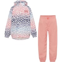 Whalley er et let og funktionelt regntøjssæt med jakke i multifarvet dyreprint kombineret med rosa bukser. Regnjakken har tildækket lynlås, som beskytter mod vind og regn, tapede sømme, aftagelig hætte og to frontlommer. Regnbukserne har tapede sømme, elastik i benåbningen og i taljen, som kan reguleres. Både regnjakken og bukserne har Molo's velkendte refleksstjerne på bagsiden. En stor fordel ved dette regntøjsprodukt er også, at det er åndbart, så høj aktivitet ikke resulterer i en fugtig inderside. Regnsættet har en vandafvisende PFC-fri imprægnering (indeholder f.eks. ikke PFOS, PFOA og lignende). Vandsøjletryk: 5.000 mm. Åndbarhed: 5.000 g/m2/24.