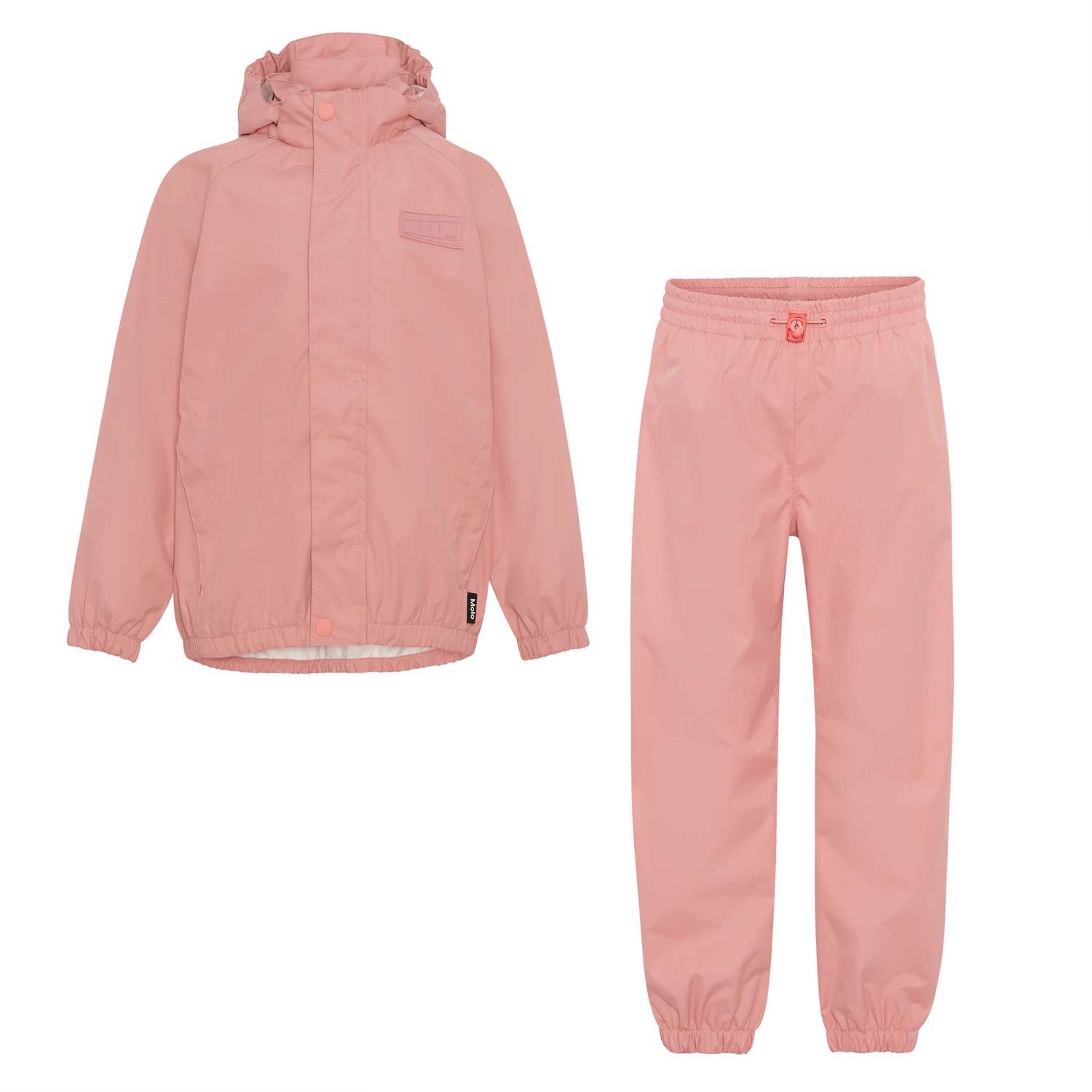 Whalley er et let og funktionelt regntøjssæt i rosa. Regnjakken har tildækket lynlås, som beskytter mod vind og regn, tapede sømme, aftagelig hætte og to frontlommer. Regnbukserne har tapede sømme, elastik i benåbningen og i taljen, som kan reguleres. Både regnjakken og bukserne har Molo's velkendte refleksstjerne på bagsiden. En stor fordel ved dette regntøjsprodukt er også, at det er åndbart, så høj aktivitet ikke resulterer i en fugtig inderside. Regnsættet har en vandafvisende PFC-fri imprægnering (indeholder f.eks. ikke PFOS, PFOA og lignende). Vandsøjletryk: 5.000 mm. Åndbarhed: 5.000 g/m2/24.