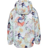 Whalley er et let og funktionelt regntøjssæt i lyseblå med print af søheste. Regnjakken har tildækket lynlås, som beskytter mod vind og regn, tapede sømme, aftagelig hætte og to frontlommer. Regnbukserne har elastisk talje og benafslutning. Både regnjakken og bukserne har Molo's velkendte refleks stjerne på bagsiden. Regnsættet har en vandafvisende PFC-fri imprægnering (indeholder f.eks. ikke PFOS, PFOA og lignende). Vandsøjletryk: 5.000 mm. Åndbarhed: 5.000 g/m2/24t