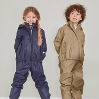 Zab er et par mørkeblå regnbukser i en blød og klassisk gummikvalitet, som er ekstra interessante, fordi indersiden er lavet med en flot kontrastfarve. Zab har elastik i taljen og ved benafslutning, justerbar fodstrop og refleks på bagsiden af det ene ben, som giver ekstra synlighed i mørket. Indvendigt fortsætter gummikvaliteten et lille stykke op i benet, derved undgår man, at regnvand trænger op ad benet. En ekstra detalje for at holde dit barn tørt. Dette produkt har en vandafvisende PFC-fri imprægnering (indeholder f.eks. ikke PFOS, PFOA og lignende). Vandsøjletryk: 8.000 mm.