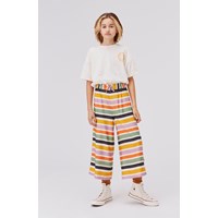 Abigail er et par flotte culotte bukser med brede striber i pastelfarver. Bukserne har en blank overflade og elastisk talje med bindebånd.