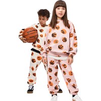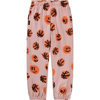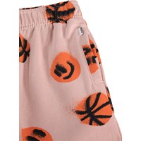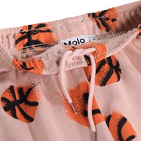 Bløde bukser i lyserød med orange basketprint i økologisk bomuld. Bukserne har almindelig pasform, elastisk talje, indvendigt bindebånd, sidelommer og elastik ved anklerne.