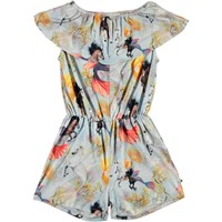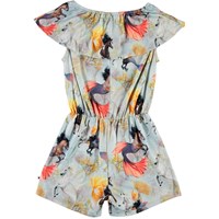 Adda er en buksedragt uden ærmer og med korte ben. Dragten er lyseblå med print af heste under vand. Adda har elastisk talje og en bred krave ved skuldrene.