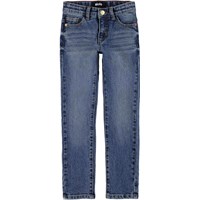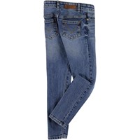 Adele er et par blå jeans med en slim pasform. Disse jeans er fremstillet med 1% elastan, som gør at de er nemme at bevæge sig i. Bemærk, at størrelserne til og med 134 har trykknap og ikke almindelig jeansknap.