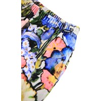 Multifarvede velourbukser i blød bomuld med normal pasform og elastik i talje og bukseben. Bukserne har et smukt print af blomster.