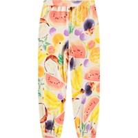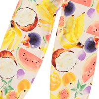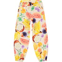 Bløde jersey bukser i økologisk bomuld. Bukserne har normal pasform og elastik i taljen og buksebenet, hvilket gør dem nemme at tage på og behagelige at have på. Farverigt print af frugter. Kombiner dem med en matchende sweater Malinda for et komplet sæt.