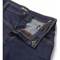 Livvidden kan justeres med en indvendig elastik for optimal pasform til alle børn. Størrelser 92-134 har trykknap for nem på- og aftagning, mens størrelser 140-176 er udstyret med en almindelig jeansknap.