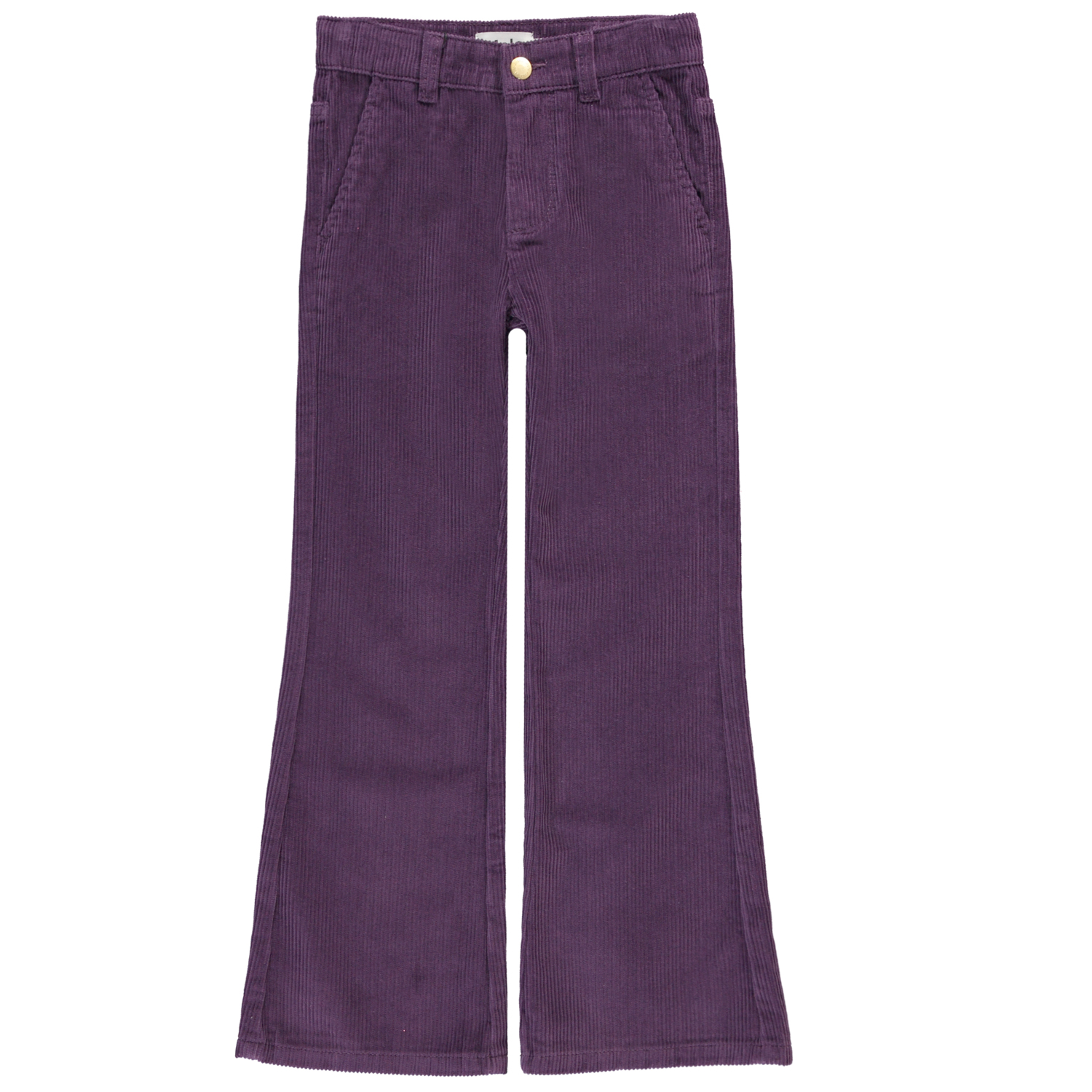 Aida er et par fløjlsbukser i lilla med vidde i benene. Bukserne har for og baglommer.