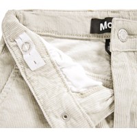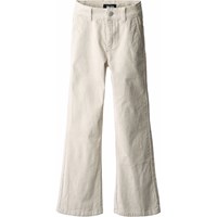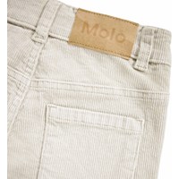 Råhvide bukser i blød bomuldsfløjl med en trompetformet silhuet. Bukserne har både for- og baglommer. Taljen har knap- og lynlåslukning samt en indvendig justerbar elastik for en god pasform.