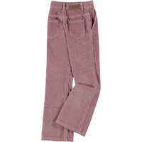 Aida er et par rosa fløjls bukser med svaj i benene. Bukserne har lommer på både front og bagside, samt bæltestropper. Bemærk, at størrelserne til og med 134 har trykknap og ikke almindelig jeansknap.