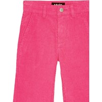 Pink bukser i blød bomuldsfløjl med trompetformet silhuet. Bukserne har både for- og baglommer. Taljen har knap- og lynlåslukning samt en indvendig justerbar elastik for en god pasform.