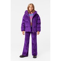 Lilla bukser i blød og bred bomuldsfløjl med en trompetformet silhuet. Bukserne har både for- og baglommer. Taljen har knap- og lynlåslukning samt en indvendig justerbar elastik for en god pasform.
