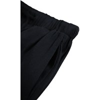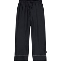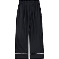 Bløde sorte bukser i viskose med løs pasform. Disse bukser har justerbar elastisk talje og hvid piping ved buksekanten. Kombiner med matchende skjorte for et komplet sæt.