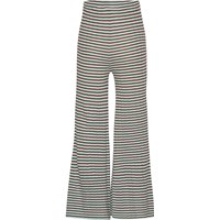 Alexandra er et par løse bukser med svaj, fremstillet i 100% viskose-rib. Bukserne har rødbrune og lyseblå striber, elastisk tajle og er dejligt lette og luftige.