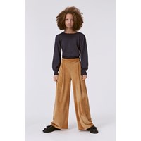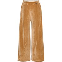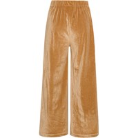 Guld bukser med høj talje og vide ben. Disse bukser er fremstillet i polyester med 5% elastan, har læg der giver masser af luft, en fast linning fortil, en elastisk linning bagtil, vide ben, samt et regulært fit.