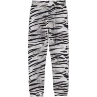 Alfrida er et par sweatpants i økologisk bomuld med sort og hvidt tigerprint. Bukserne har en løs pasform og en behagelig elastisk talje. På låret af det ene bukseben er et påtrykt gult Panthera logo.