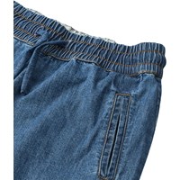 Mørkeblå cargobukser i økologisk bomuldschambrey med løs pasform. Har elastisk talje med bindebånd, sidelommer, cargolommer på lårene og elastik ved anklerne for en sporty finish.