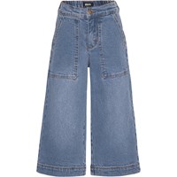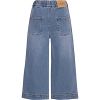 Blå, cropped og højtaljede jeans med bootcut. Disse jeans er fremstillet i bomuld med 1% elastan, der sikrer god komfort og bevægelighed. De har påsyede lommer, baglommer, fast talje fortil, elastisk talje bagtil, cropped bootcut, samt et regulært fit. Buksernes livvidde kan justeres med en indvendig justerbar elastik, så de passer perfekt til alle børn. Str.92-134 har trykknap, så bukserne er nemme at få af og på - str.140-176 har regulær jeansknap.