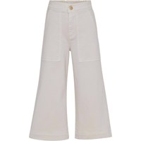 Alyna er et par hvide brede bukser med store påsyede lommer på fronten. Bukserne har elastisk talje bagpå, som sikrer en god pasform.