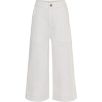 Alyna er et par hvide brede bukser med store påsyede lommer på fronten. Bukserne har elastisk talje bagpå, som sikrer en god pasform.