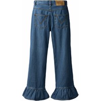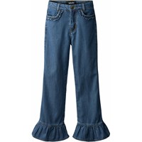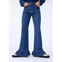 Bløde blå denimbukser fremstillet i en blanding af viskose og bomuld. Bukserne er designet med fire praktiske lommer og fine detaljer som flæser ved forlommerne samt langs buksekanten.