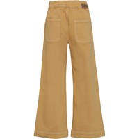 Amelie er et par honning farvede brede bukser med store påsyede lommer på fronten. Bukserne har elastisk talje bagpå, som sikrer en god pasform.