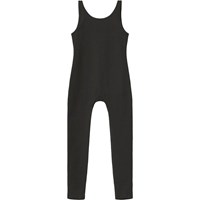 Sort heldragt i elastisk økologisk bomuldsjersey med balletreferencer. Brede stropper, dyb ryg og lange ben.