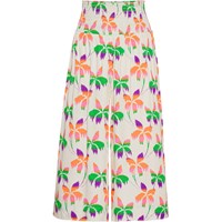 Lyse kakigrønne bukser med multifarvet palme print. Bukserne falder flot i den bløde viskose og har et bredt taljestykke syet med smock effekt, der gør dem nemme at komme i og behagelige at have på.