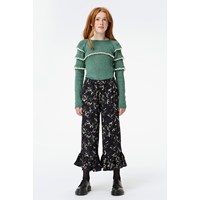 Anis er et par mørke culotte bukser med blomster printet 'Moonlight Garden'. Bukserne har flæsekant i bunden og en elastisk talje, som sikrer en behagelig pasform.