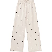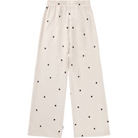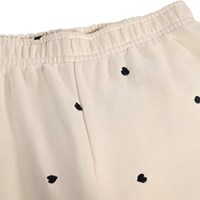 Bukser i blød økologisk bomuldsjersey med elastik i taljen og en afslappet pasform. Det lyse design er dekoreret med små broderede hjerter, der giver et enkelt og feminint udtryk.