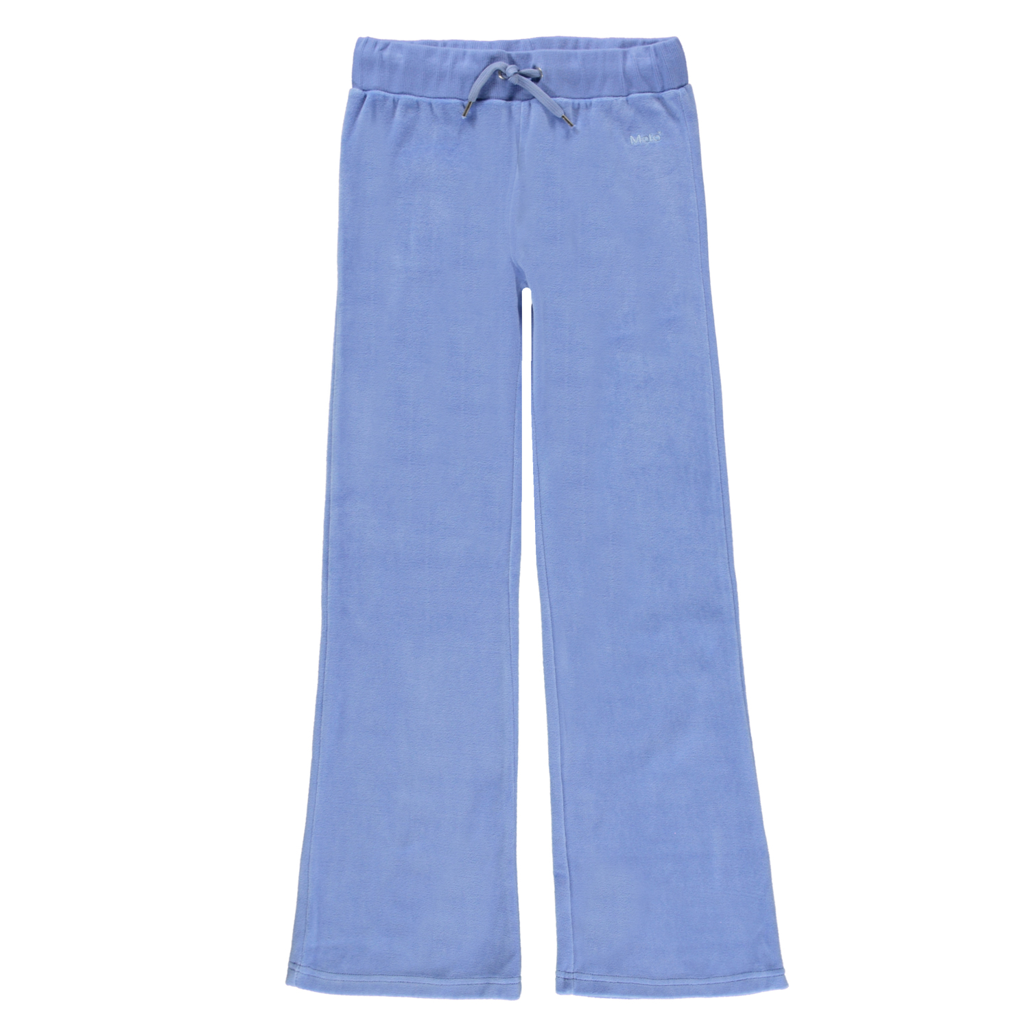 Annie er et par blå velour sweatpants. Bukserne har let svaj for neden og en elastisk talje med bindebånd. Kombiner bukserne med den matchende hættetrøje for et complet look.