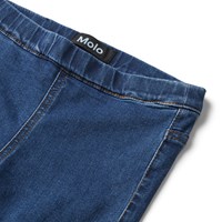April er et par blå jeggings i jeans look med elastisk talje. Den stretchy kvalitet sikrer en behagelig pasform samt god bevægelsesfrihed.