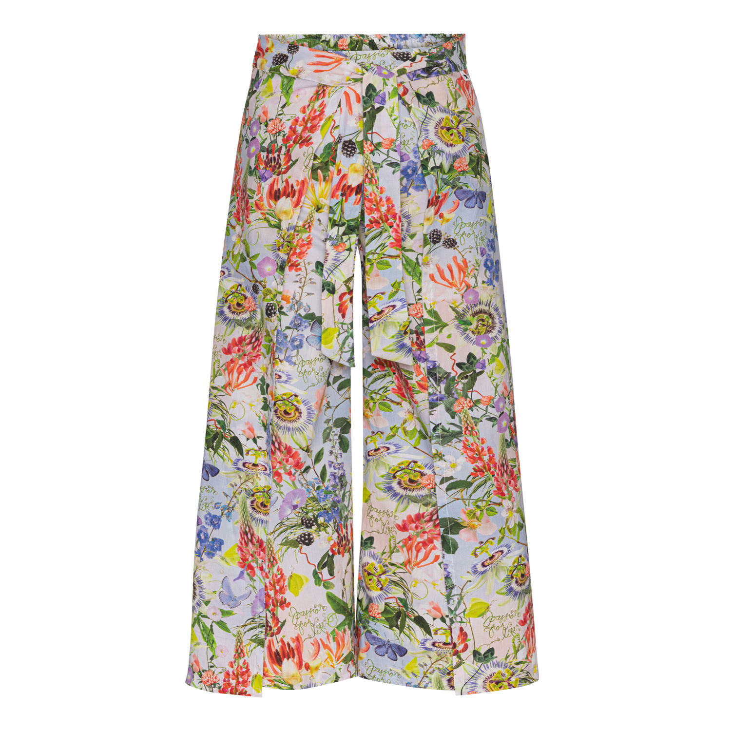 Aretha er et par blomstrede slå-om bukser, som er luftige og perfekte til varme dage og ture til stranden. Bukserne har bindebånd på fronten, elastiktalje og flot print af engblomster.