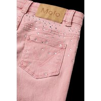 Lyserøde jeans i strækbart, bomuld med similisten. Jeansene har klassisk 5-lommedesign, en elegant trompetform og en almindelig pasform. Taljen kan nemt justeres med en indvendig elastik, så bukserne sidder perfekt på alle børn. Størrelse 92-134 har praktisk trykknap, mens størrelse 140-176 er udstyret med en traditionel jeansknap.