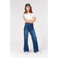 Asta er et par blå brede jeans med vidde i benene. Bemærk, at størrelserne til og med 134 har trykknap og ikke almindelig jeansknap.