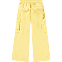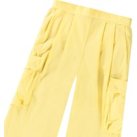 Gule bukser i økologisk bomuld. Bukserne har påsyede lommer på hver side af låret. Buksernes talje er fast fortil hvor bagpå er den elastisk, det giver en god pasform og er nem at komme i. Bukserne har brede læg fortil og giver buksen vidde samt et baggy look.