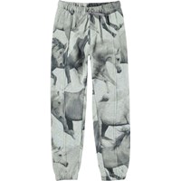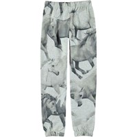 Aura er et par grå sweatpants med heste print, som er tone i tone med bukserne. Bukserne har en elastisk talje med bindebånd i livet.