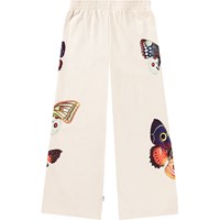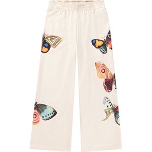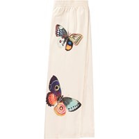 Råhvide jerseybukser i økologisk bomuld med en børstet inderside, hvilket gør dem dejligt bløde og varme at have på. Bukserne har en løs pasform med elastik i taljen og et farverigt print af smukke sommerfugle, der strækker sig op langs begge ben. Kombiner bukserne med en matchende poncho for at fuldende sættet.