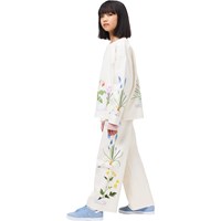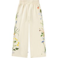 Råhvide jerseybukser i blød, økologisk bomuld. Bukserne har en løs pasform og elastik i taljen, som sikrer nem påklædning og høj komfort. Modellen er bred og har et fint naturmotiv trykt ned langs siden af benene.
