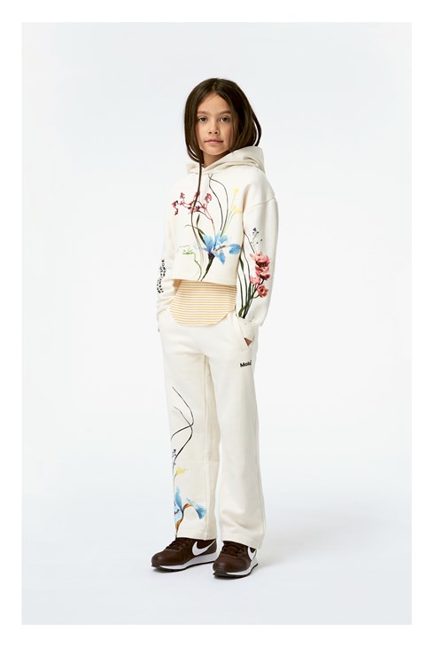 Aurita er et par lyse sweatpants med blomster print op ad det ene ben. Bukserne har lommer, samt elastisk talje. Kombiner bukserne med den matchende hoodie.