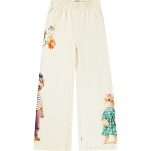 Råhvide sweatpants i økologisk bomuld. Bukserne har en løs pasform, med brede ben og elastik i taljen samt et farverigt af søde dyr iført tøj. Kombiner bukserne med en matchende sweatshirt for at fuldende sættet.