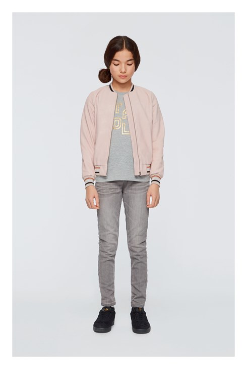 Rosa læderjakke i det blødeste lammeskind med lynlås, lommer i siden og stribet rib ved hals, ærmeafslutning og bund.