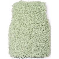 Lysegrøn fluffy vest i teddy af genanvendt polyester. Designet lukkes enkelt og praktisk med en lille hægte, der fuldender det bløde og hyggelige look.