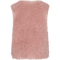 Lyserød faux fur vest i rulams-look. Vesten har V-halsudskæring og en hægte til lukning. Perfekt til de køligere dage. Brug evt. vesten uden på en skjorte, langærmet t-shirt eller en kjole, for et cool look.