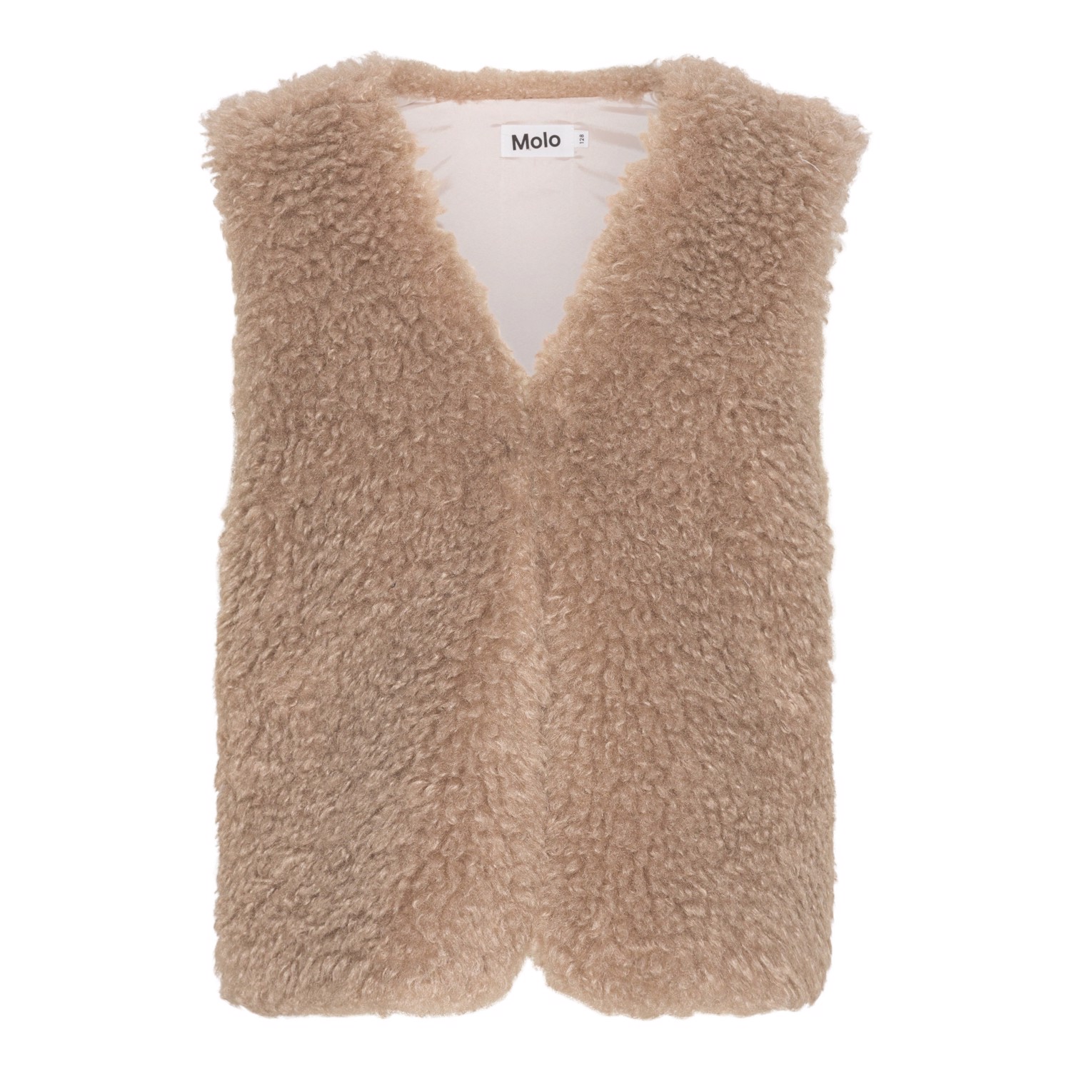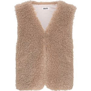 Beige faux fur vest i rulams-look. Denne vest er fremstillet i 100% polyester med rulam-look, har V-halsudskæring, samt et regulært fit. Perfekt til de koldere dage. Brug evt. vesten uden på en skjorte, langærmet t-shirt eller en kjole, for et cool look.
