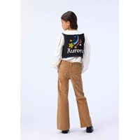 Kort, let vatteret vest med knaplukning foran. Vesten er sort med broderede blomster på forsiden, stjerneskud på bagsiden og teksten ''Aurora'', der tilføjer et unikt og dekorativt præg