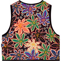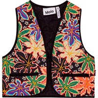 Multifarvet vest i quiltet, blødt viskose med små paspolerede lommer. Vesten har en rund halsudskæring, bindebånd foran og kantbånd ved ærmegab og kanten, hvilket giver en flot finish. Den har desuden et smukt multifarvet print af ahornsblade, der smelter sammen.