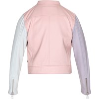 Smørblød læderjakke i lækre pastelfarver. Læderjakken har en kort kinakrave, der lukkes med en trykknap, lynlås ned langs fronten og ved ærmeafslutning samt lommer i siden.