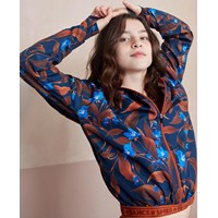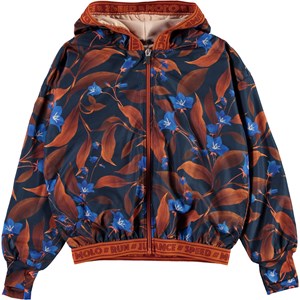 Ophelia er en luftig sportsjakke i mørkeblå med print af brune blade og blomster. Jakken har lynlås lukning og hætte, samt brunt kantebånd med tekst. Jakken er en del af Molo's sportskollektion, som er med til at binde mode og sport tættere sammen. Kombiner Ophelia med en af de matchende styles fra Molo's sportskollektion for et komplet og cool look. Molo’s sportskollektion er fremstillet med en unik high-performance teknologi kaldet HeiQ Smart Temp, der understøtter kroppens naturlige nedkøling. Kølefunktionen aktiveres, når duer varm og svedig. Kølefunktionen deaktiveres, når kroppen er nedkølet. HeiQ Smart Temp sikrer optimal komfort og ydeevne. Testet uafhængigt som sikkert for huden.