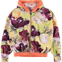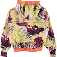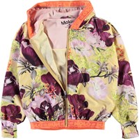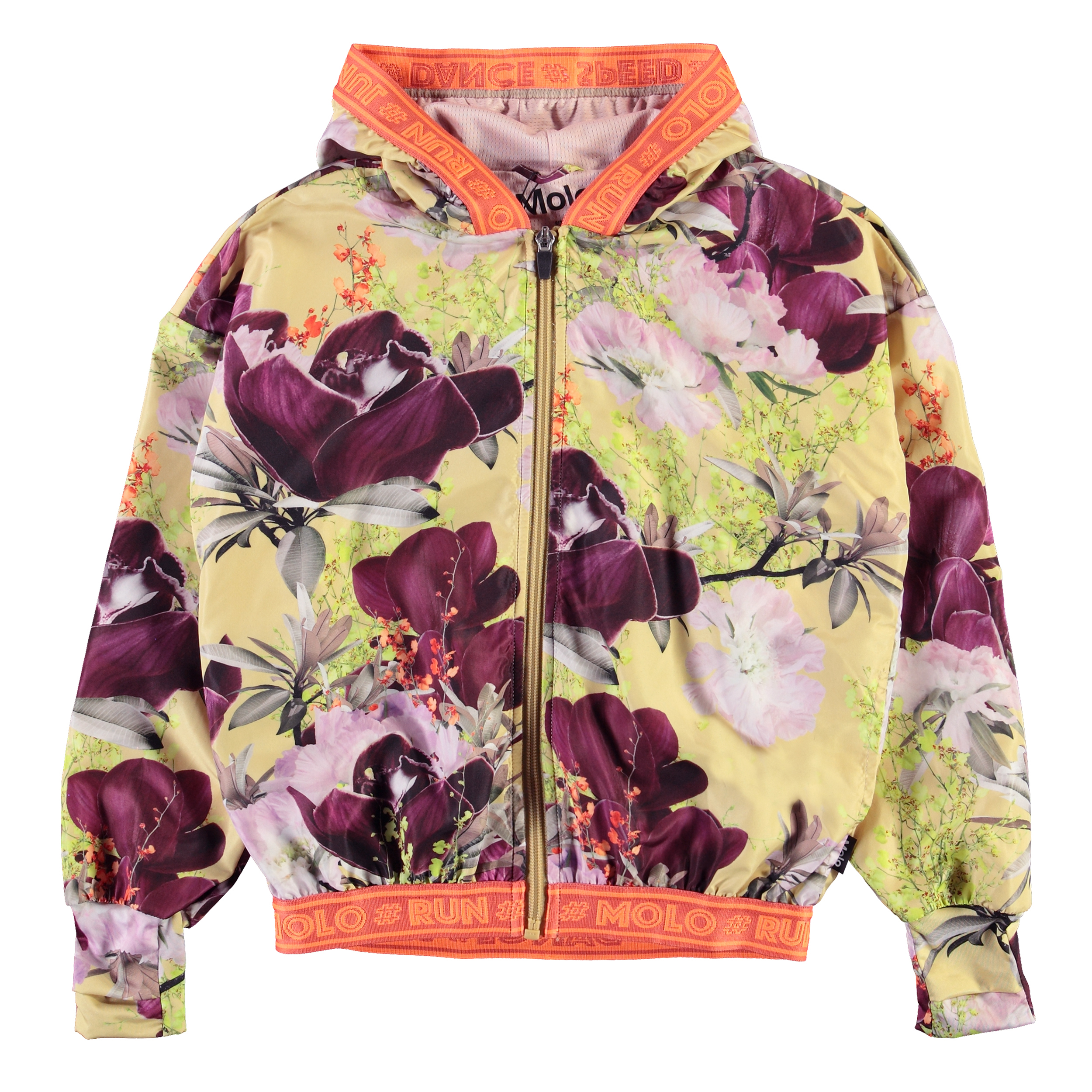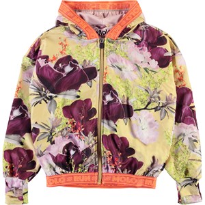 Ophelia er en luftig sportsjakke i lysegul med blomster print. Jakken har lynlås lukning og hætte, samt orange kantebånd med tekst. Jakken er en del af Molo's sportskollektion, som er med til at binde mode og sport tættere sammen. Kombiner Ophelia med en af de matchende styles fra Molo's sportskollektion for et komplet og cool look. Molo’s sportskollektion er fremstillet med en unik high-performance teknologi kaldet HeiQ Smart Temp, der understøtter kroppens naturlige nedkøling. Kølefunktionen aktiveres, når duer varm og svedig. Kølefunktionen deaktiveres, når kroppen er nedkølet. HeiQ Smart Temp sikrer optimal komfort og ydeevne. Testet uafhængigt som sikkert for huden.
